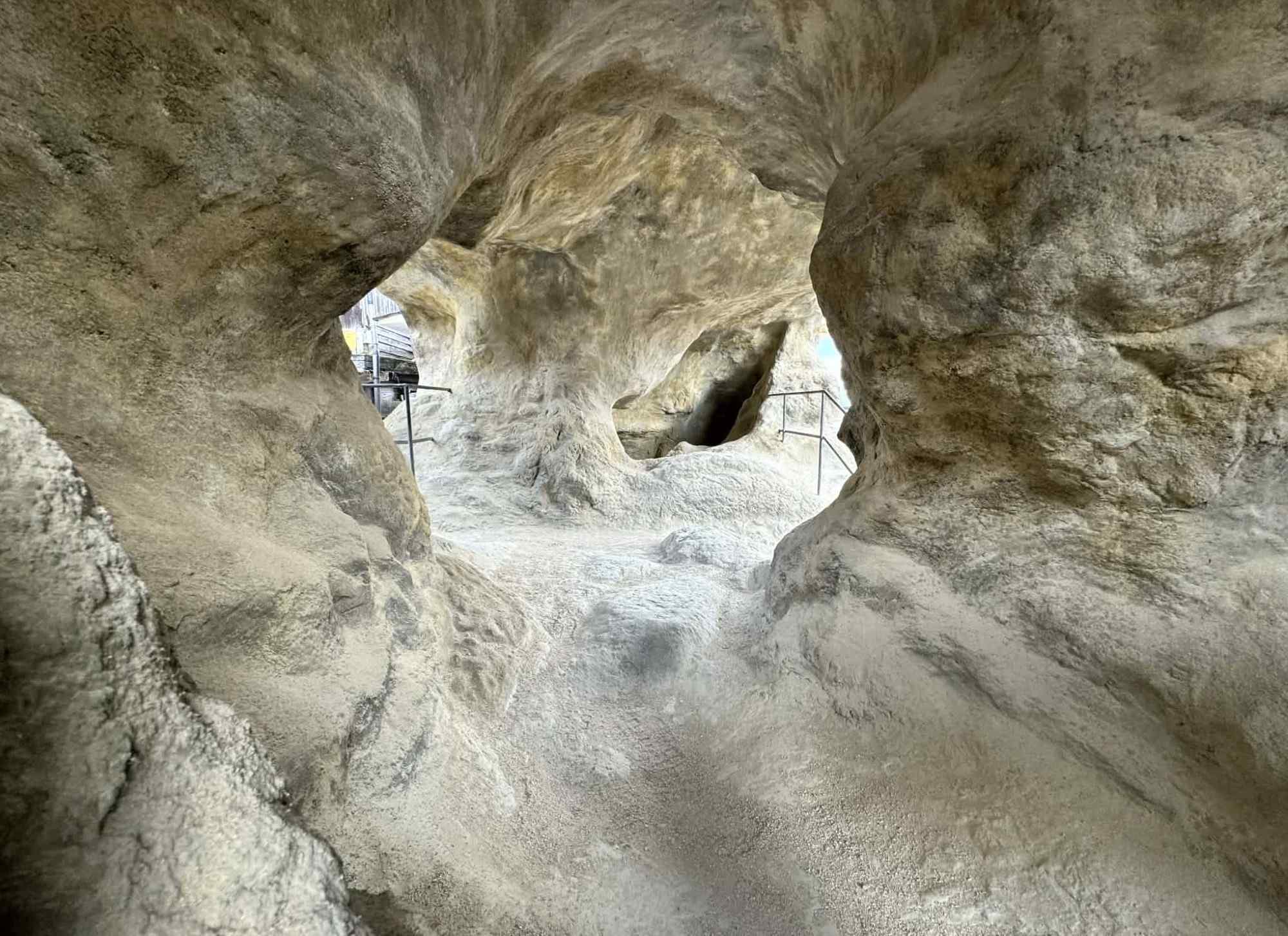 Vu de l'extérieur, rien ne laisse présager le choc visuel. Nous sommes à l'annexe du Geothermal Tourism Lab ENMA, face à une maison tout ce qu'il y a de plus banal. Mais une fois le seuil franchi, la domesticité s'effondre. Les artistes n'ont pas cherché à ajouter de la matière, mais à en soustraire. Les murs et les sols semblent s'être dissous pour laisser place à un vide continu, un antre aux textures de pierre érodée et de strates volcaniques. Ce n'est plus une pièce façonnée par l'homme, mais une rupture qui semble naturelle, comme si le bâtiment avait été excavé de l'intérieur.